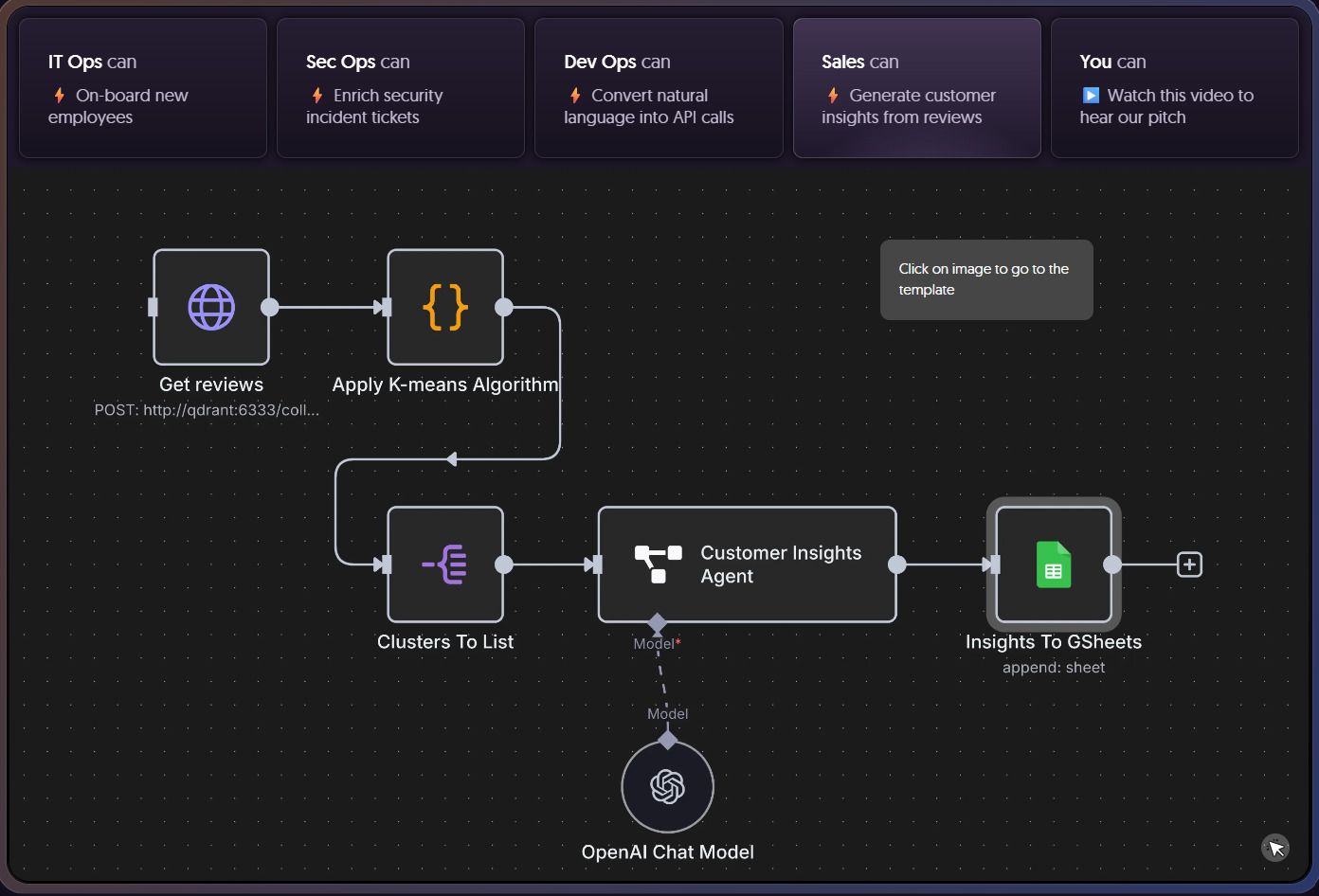 It also includes built-in AI nodes that let you summarize documents, answer questions based on your data, and more.