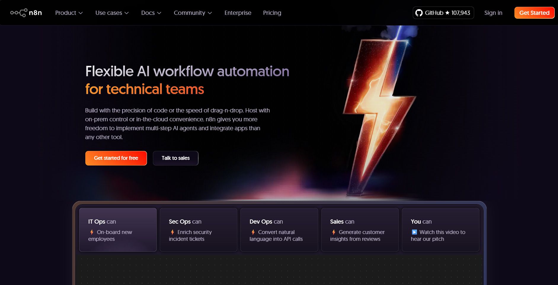 n8n is a low-code open-source automation software. Unlike other tools, you can self-host it on your own infrastructure.
