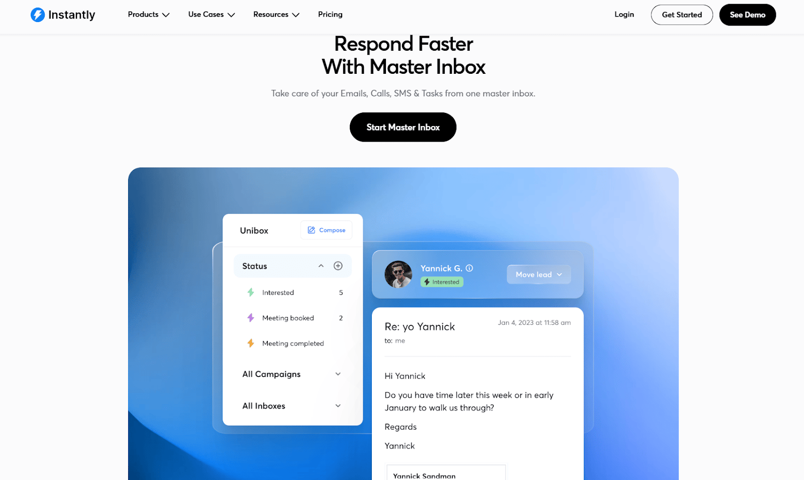 Outreach is the foundation. You can build multi-step email sequences, set sending schedules, personalise messages at scale, and manage everything from one dashboard. This is what most people mean when they say they use Instantly.