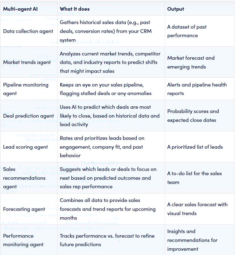 Let’s say you’re using an AI multi-agent for sales forecasting and pipeline management. Here’s how the workflow would look like: