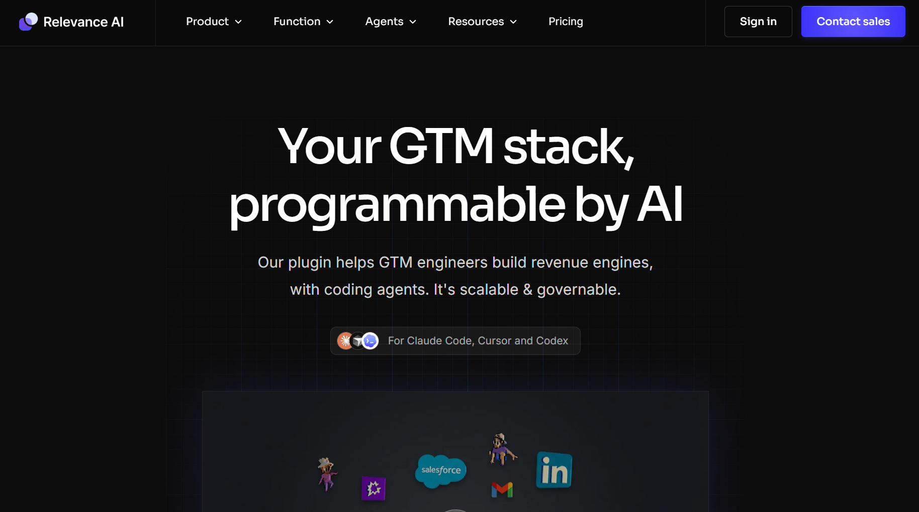 It also comes with a set of integrations focused specifically on go-to-market workflows, covering tools like Apollo, LinkedIn, HubSpot, Gong, Salesforce, Smartlead, and Instantly.