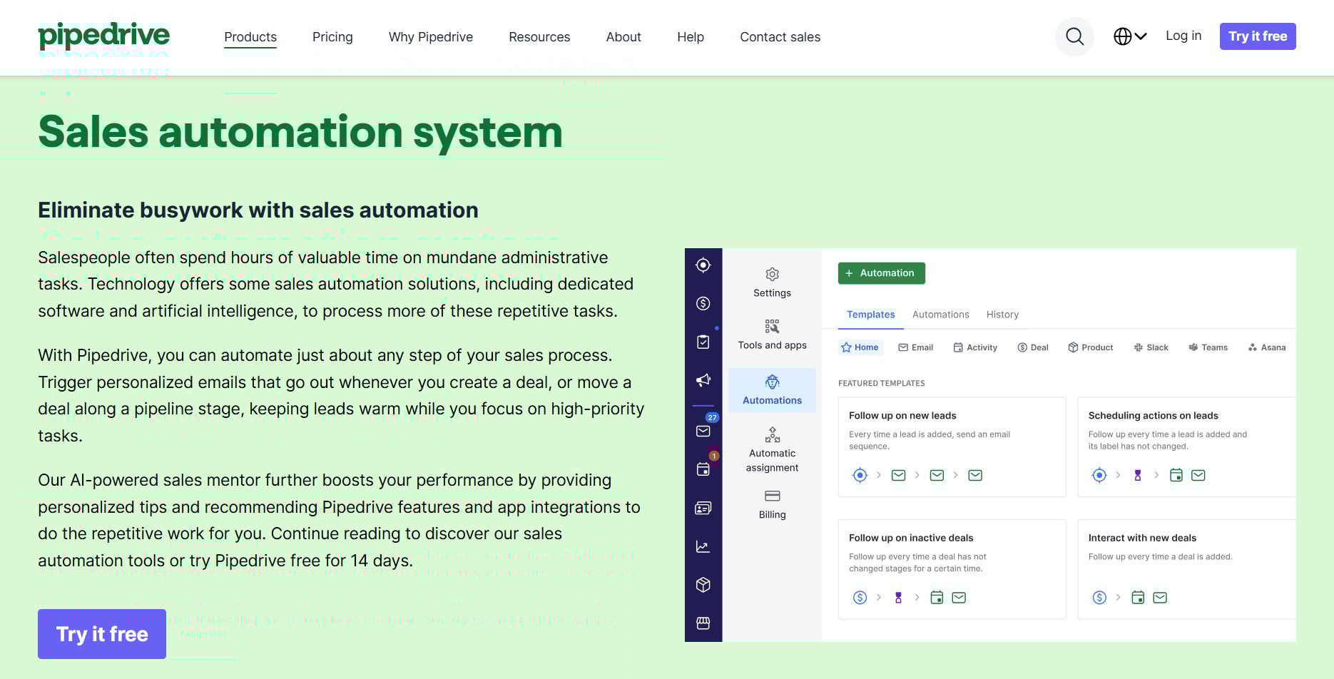 Pipedrive – Best for small to mid-sized businesses that need a simple, visual sales pipeline with automation features to track leads and deals effortlessly.