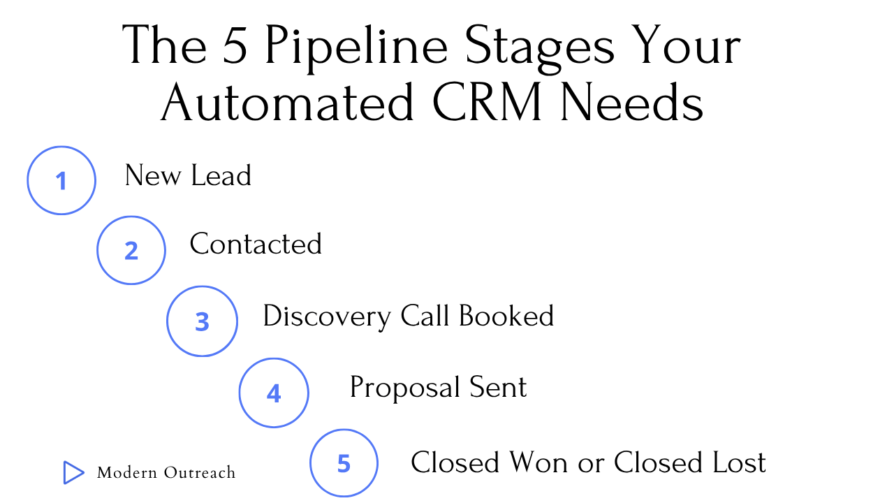 This is where most people go wrong. Either they create way too many stages and overcomplicate everything, or they keep it so vague that it’s not useful. In practice, 5 stages is more than enough to keep things clear and workable.